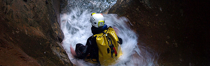 The schools intend to make known the passing techniques of canyoning. They last two weekends and two weeknights. The first week starts with the teaching of techniques and showing films in closed space. It is followed by two descents in canyons, the first without and the second with water. T he second week higher level techniques are taught in closed space and followed by descents in canyons with water.